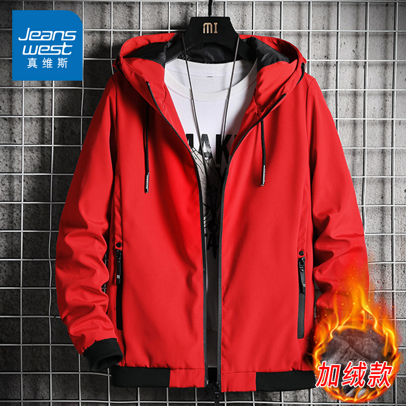 真维斯秋冬季夹克男士宽松工装外套男生上衣加绒春秋防风厚夹克衫