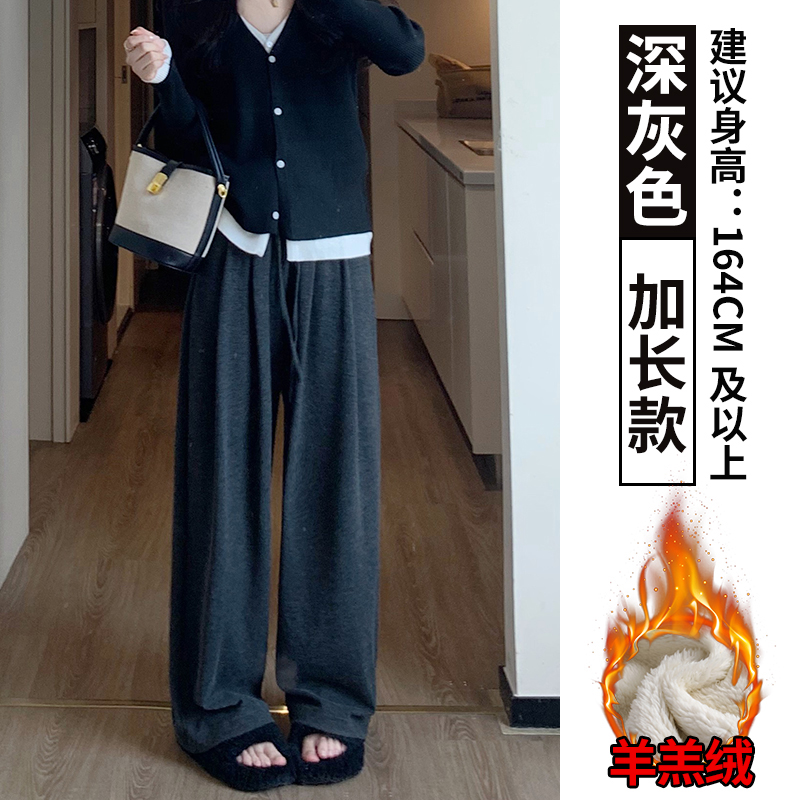 咖色糯米裤女秋冬2025新款小个子直筒裤宽松慵懒风加绒加厚阔腿裤