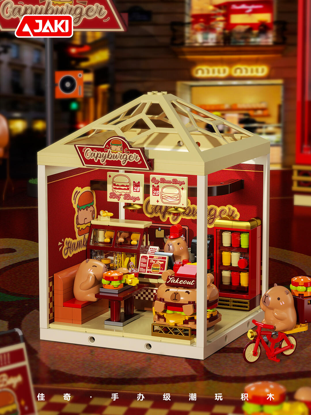 佳奇积木卡皮巴拉超级小镇微缩场景吧唧diy小屋灯光女孩生日礼物