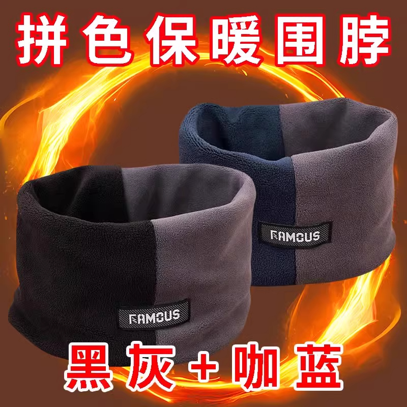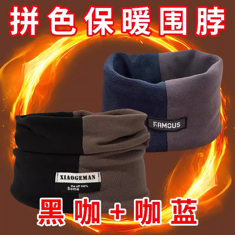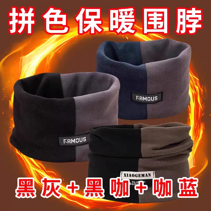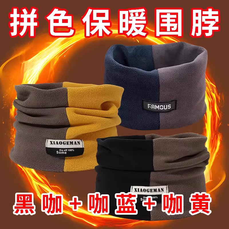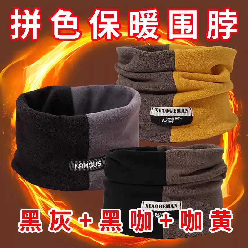 秋冬季2025新款拼色保暖围脖女百搭男女同款遮脸面罩脖套防风围巾
