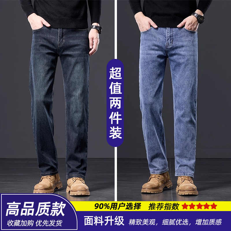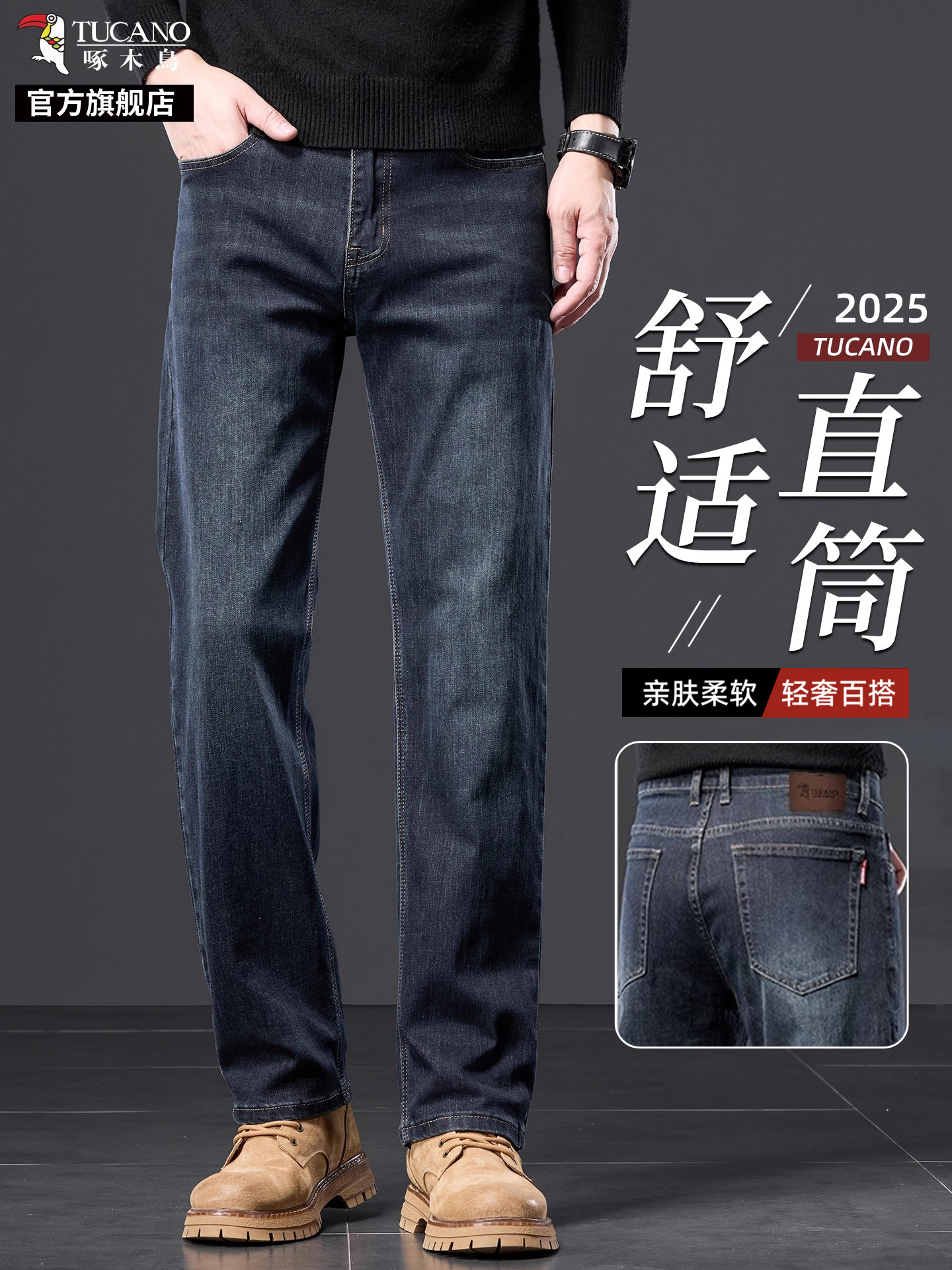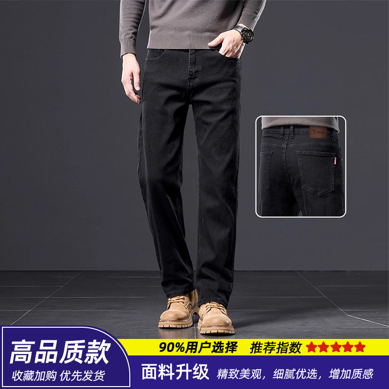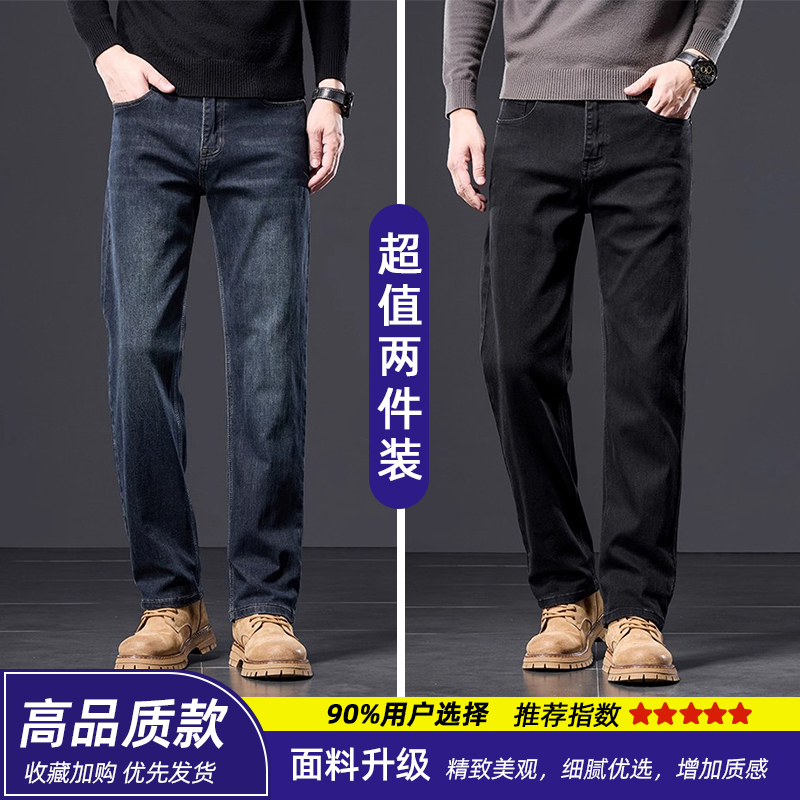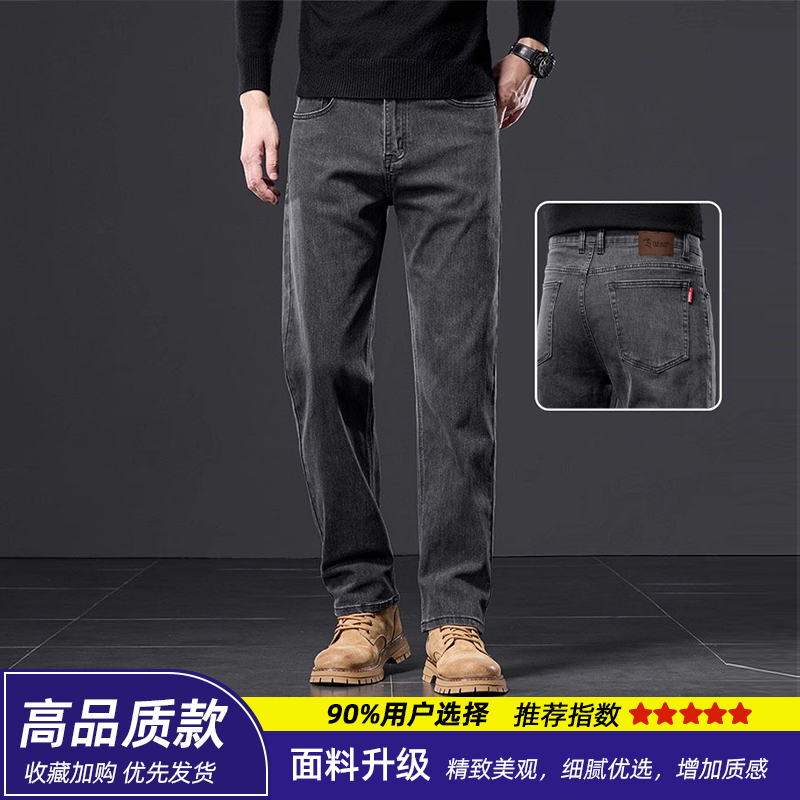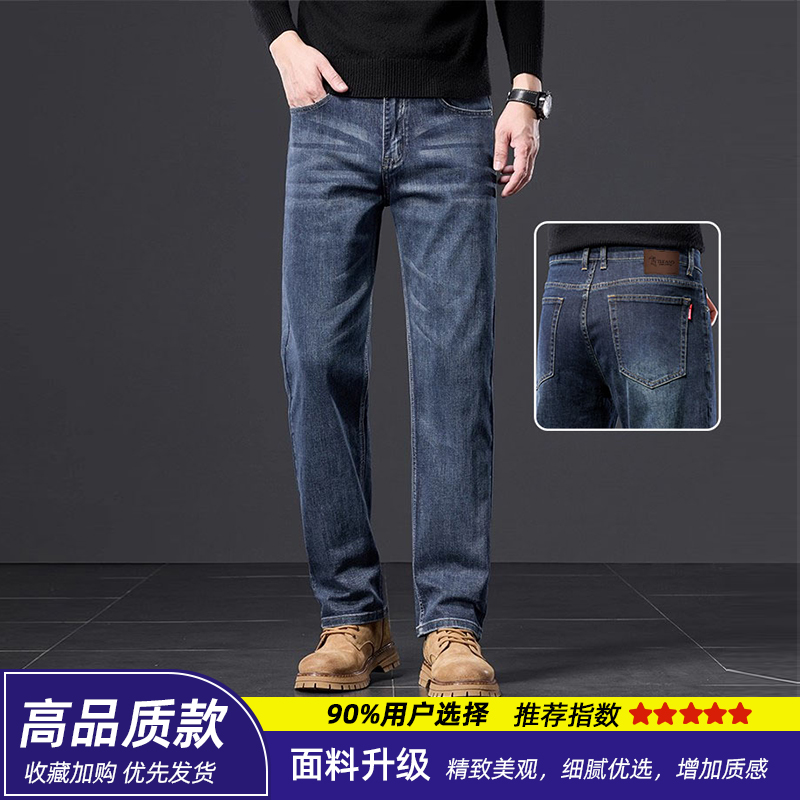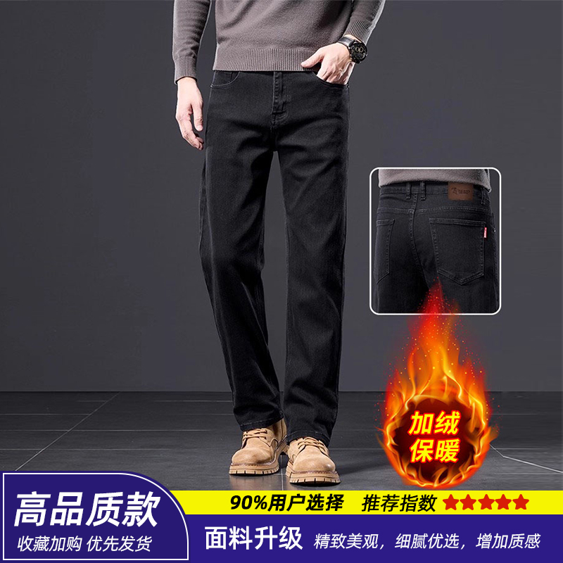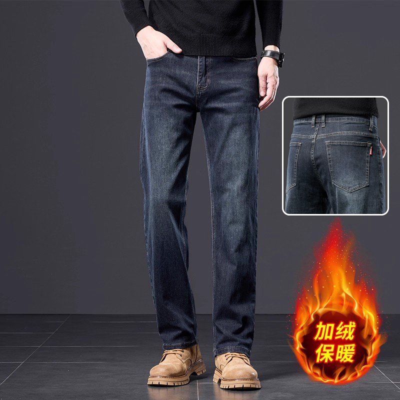 啄木鸟牛仔裤男士2025新款秋冬季宽松直筒中年爸爸加绒加厚裤子K